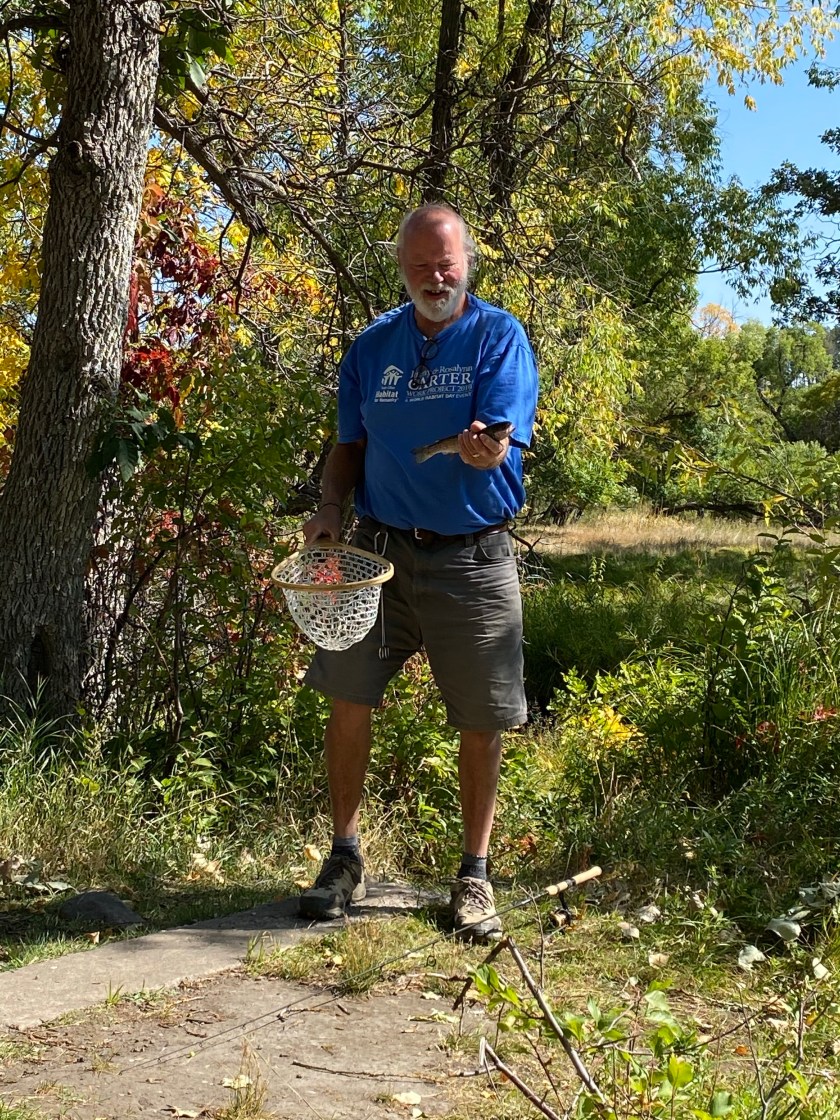 So we put on a #4 barbless hook on the line and a small weight about 18″ from the hook. Keith started out with a slip bobber. I just cast the line out and slowly reeled it back in.