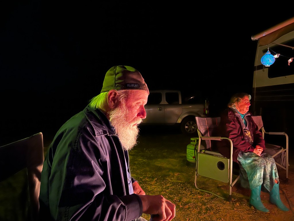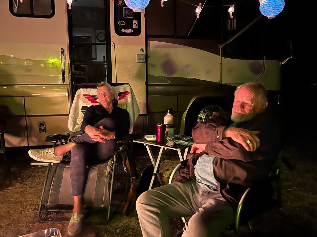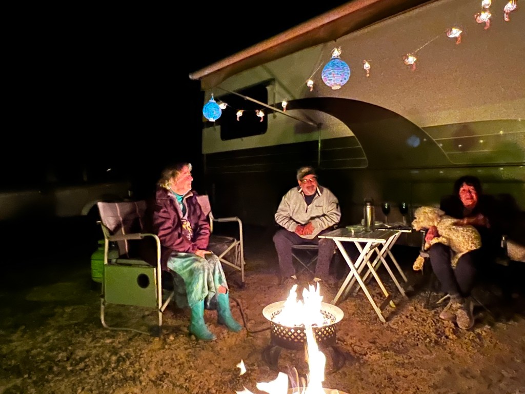 Hans and Marjet’s friends from LA arrived and parked near them. On most evenings there were as many as three propane gas fire pits going with people gathered around at our end of the Foretravels and a big wood burning fire at the other. The next day it was easy to figure who went where.