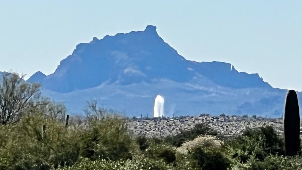 Fountain Hills is off to the west and a bit south about 6 miles away. They are famous for their very large fountain which pumps water high into the sky. We see the top of the fountain at times but cannot see Fountain Hills itself or even its night-time lights from the campground.