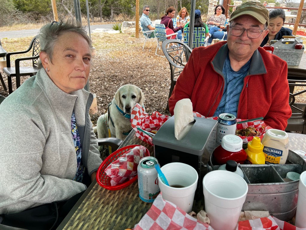 We had lunch with Jeff and Sandy at Alamo Springs Cafe. It started as a cool day but the sun came out and it was nice. Their dog, Greta came along hoping for a morsel.