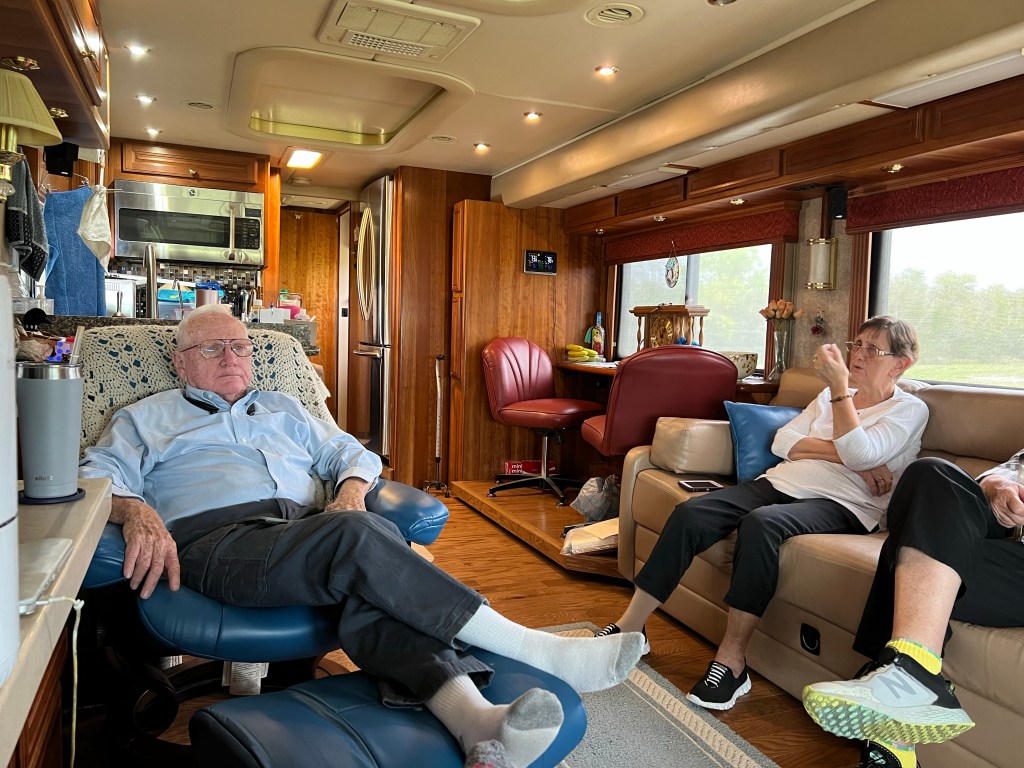 We had a chance to visit Rudy and Caroline in their new to them coach! Beautiful coach and they are loving it for sure! Good to hear you both are enjoying your bikes. I sold the Electric Bike I purchased in Yellowstone. Hated to but just took up too much room in the back of the car, even folded. Might get another, just smaller. We are just about done with our doctors visits here in TN and will be heading up to Eureka Springs, AR for their rally with Chris Lang and his wife and then to McKinney, TX for a visit to MCD on front windshield. Hope to hook up with Keith at Nac at his new shop and then work our way back to Florida for the winter. Lot’s of fuel headed our way! Hope the price starts to come back down again! UGH! Our best to you both,