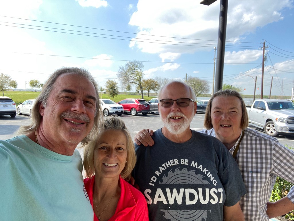 We had another pleasant spring time in Fredericksburg. We left at the end of March and headed for Houston. We wanted to see Rudy and Caroline in their new, to them, 2001 Foretravel in their new place. And then we went to dinner at the Monument Inn, Rudy’s favorite. Keith and Jo joined us.