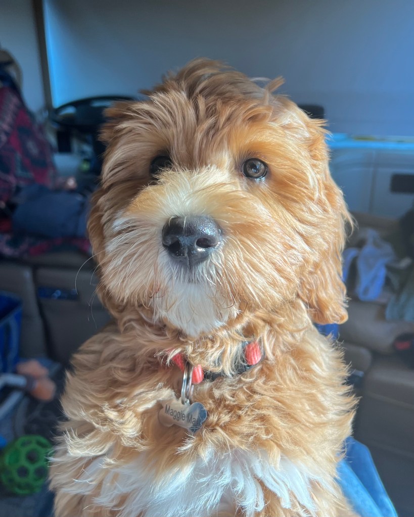 Maggie had ridden in the coach once before. She was still not quite big enough to jump up on the couch so Susan helped her up and sat with her for an hour or so as she rode in a pet box. She was calm and quiet. We helped her up and down when she wanted. She often slept between the front seats. She just wanted to be close to us.