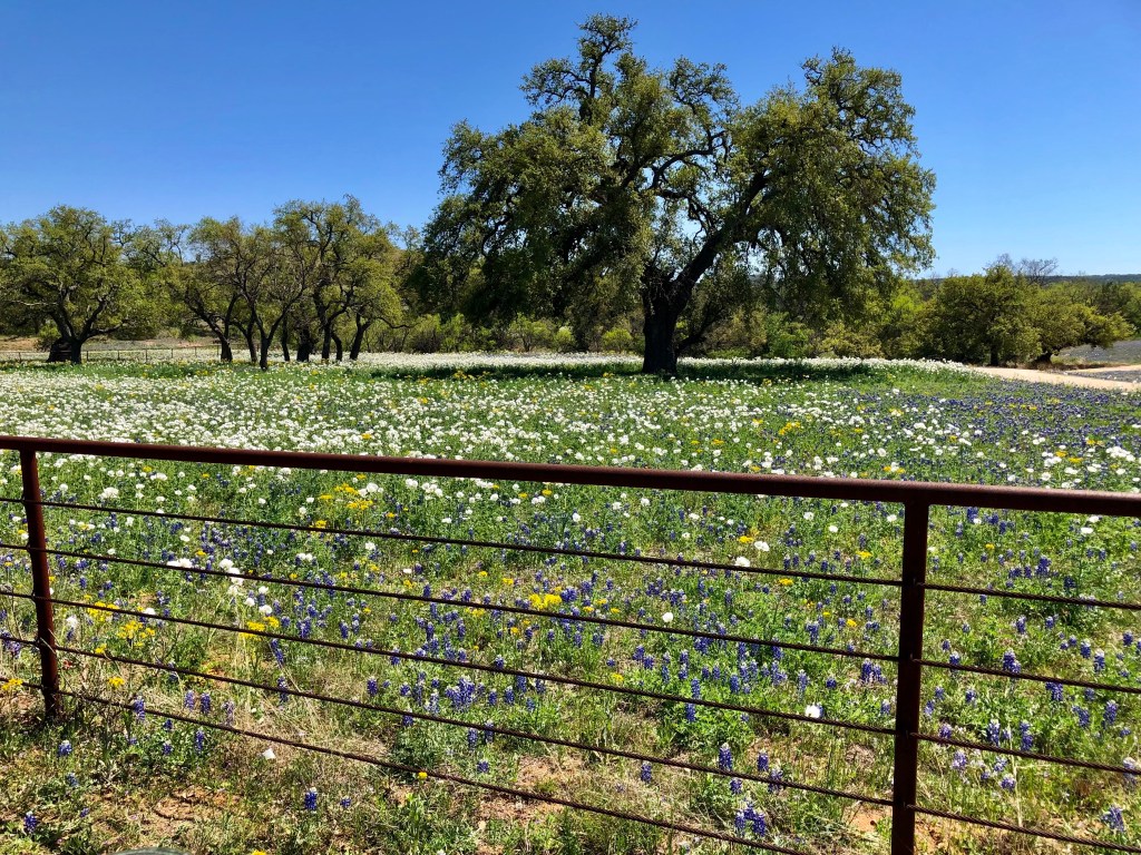 And Fredericksburg brings 70 and 80-degree days, often with big puffy clouds. A bit of rain sometimes, usually overnight. The warming temperatures of March and the increasing sun and some rain wake up the Hill Country. The wildflowers start to bloom, by April, everywhere. People’s front yards, along almost every highway and back road, along most fence lines. The most popular are the Texas Bluebonnets.