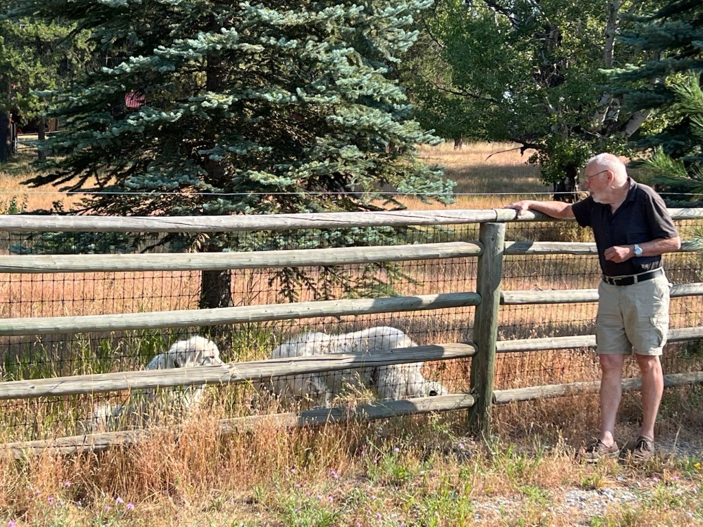 Three Great Pyreneese dogs and a German Shepherd. And three horses in the barn.