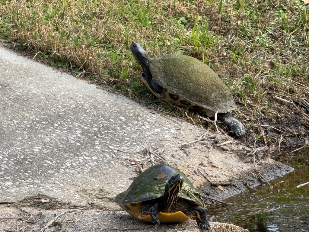 And just a ways down the ditch were turtles. Some quite big. They too were just looking for a good sun bathing spot. There were usually two or three out of the water and that many in the water waiting their turn in the sun.