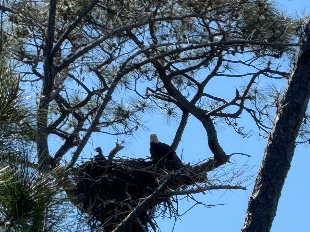 There were three places along the bike trails to see nesting eagles. In this nest, you can see an adult and the little one on the left side of the nest. This was a popular stopping point for many riders. Sometimes a traffic jam with people just stopping in the middle of the trail when there was plenty of room along the side.