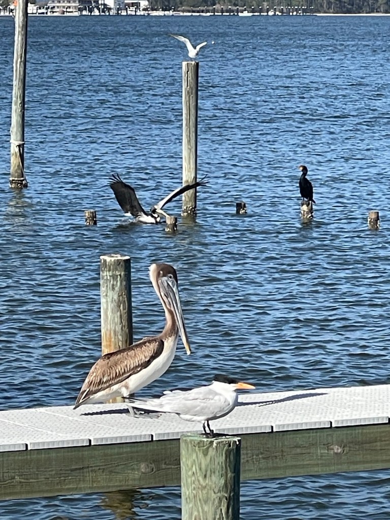 Lots of birds out at the end of the docks. Many of the places we like for lunch have docks where people tie up while going in for lunch.