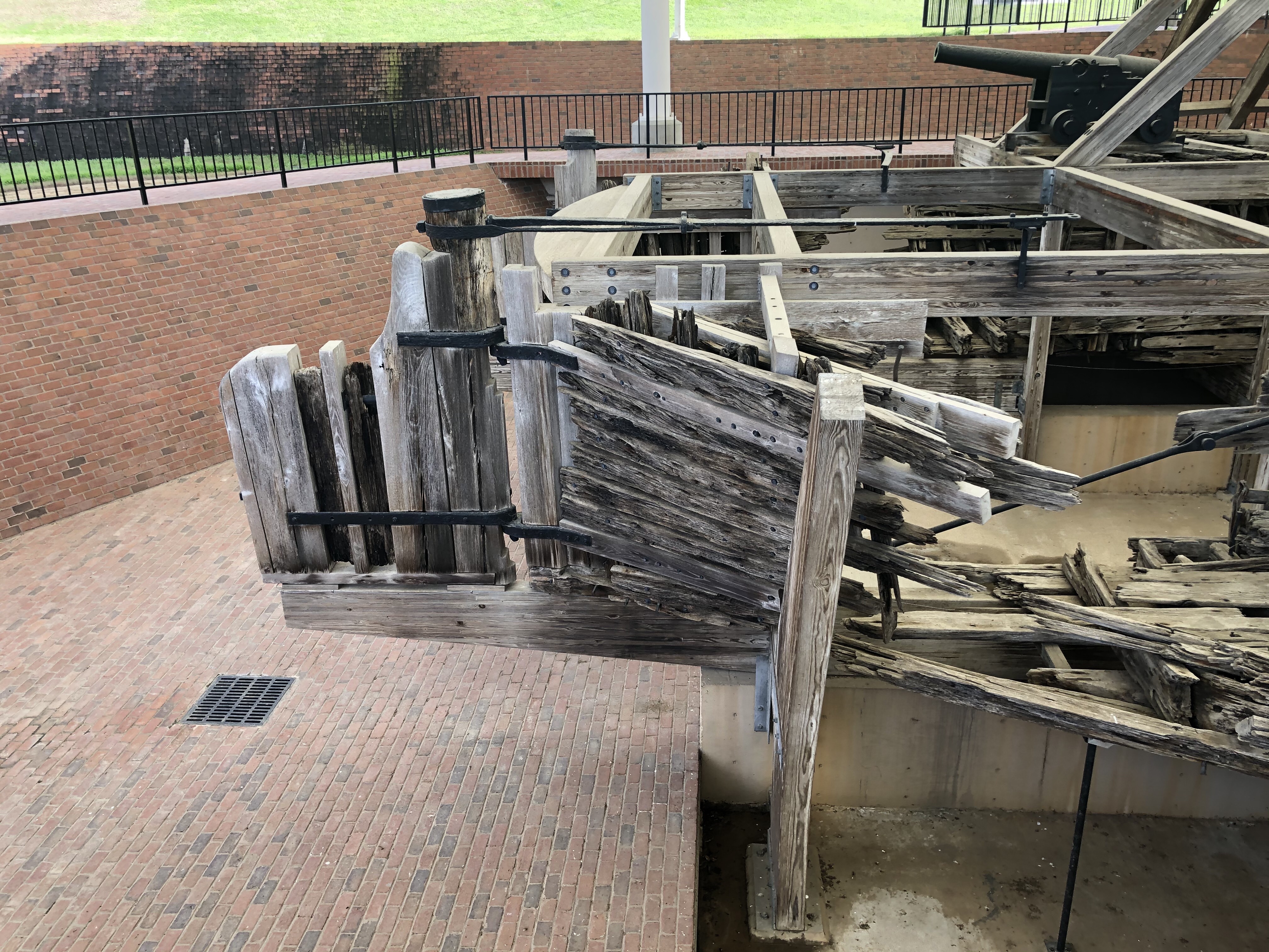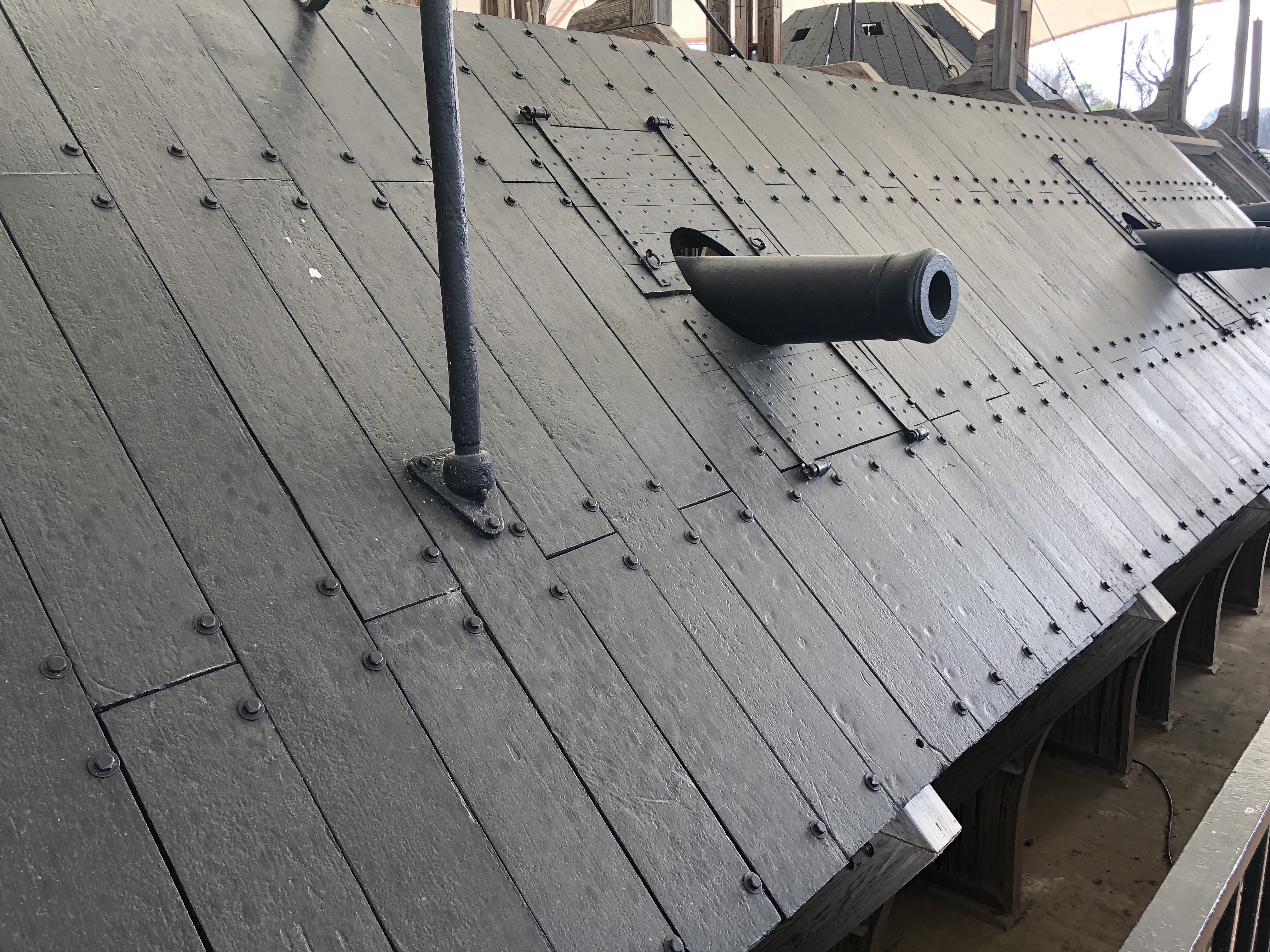The front armor face of the turrets had 18″ thick armor. I found it interesting that these giant plates were jointed together with joints that looked like woodworking joints for strength.